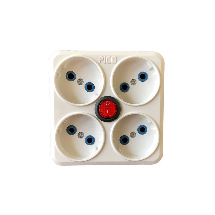چهار راهی دیواری برق از برند پیکو PICO دارای چهار خروجی برق و کلید قطع وصل چراغ دار با کیفیت مواد اولیه خوب و جنس داخلی از آهن ، مناسب برای دستگاه های برقی تک فاز تا ۱۰ آمپر باحداکثر توان قابل پشتیبانی ۲۵۰۰ وات ، حداکثر جریان انتقالی ۱۰ آمپر و جریان ورودی ۲۲۰ ولت ساخت کشور ایران در ابعاد ۳۲ × ۱۰ × ۱۰ میلی متر با وزن ۶۰ گرم در رنگ سفید برای مصارف خانگی – شرکتی و نیمه صنعتی مناسب می باشد . از دیگر ویژگی های چهار راهی پیکو می توان به به کارایی بالای محصول در مقابل قیمت مناسب و کیفیت ساخت بالا آن اشاره نمود .